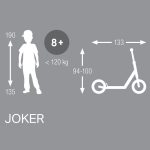 Like all PUKY models, the aluminium scooter has an impact-resistant powder coating. The PUKY JOKER weighs only 7.7 kg thanks to the light aluminium frame and can be reduced in size by the folding stem. The handlebars of the PUKY JOKER can be adjusted in height so that young and old can have fun with this clever scooter.
